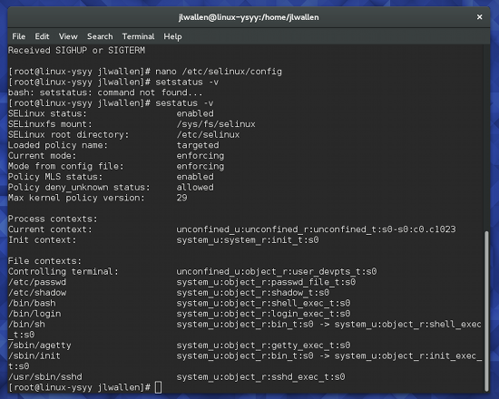 设置 SELinux 的模式实际上很简单——取决于你想设置什么模式。记住:永远不推荐关闭 SELinux。为什么?当你这么做了,就会出现这种可能性:你磁盘上的文件可能会被打上错误的权限标签,需要你重新标记权限才能修复。而且你无法修改一个以 Disabled 模式启动的系统的模式。你的最佳模式是 Enforcing 或者 Permissive。