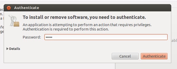 很简单,点击 OK 确认就可以了,然后稍微过一下,你就会看到 Ubuntu Software Center 已经打开执行起来了,我们要做的就是点击那个 Install 按钮了。