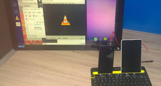 在巴塞罗那的这场大会上展示的是拥有 Atom x3、2GB RAM 和 16GB 存储以及支持外部显示的的 SoFIA(Intel 架构的智能或功能手机)智能机原型。插上键盘、鼠标和显示,它就变成了一台桌面 Linux,并可以选择在大屏幕的一个窗口中显示 Android 桌面。