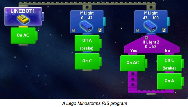看见你的代码出现在生活中是一件神奇的事情。早在本世纪初,乐高和 MIT 就合作了一个项目,将基于模块的编程带到了现实世界。学生们可以在计算机上写程序,然后将其下载到他们搭建的机器人里。早期的 RIS( 机器人创造系统 robotics invention system )看起来十分像 Scratch。