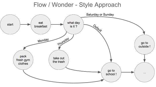 下图展示了如何使用基于流的方式来判断起床后的任务。