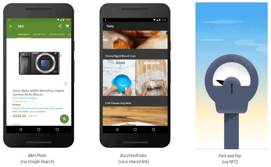 Android Instant Apps 声称可以从一开始就帮你摆脱这样的两难境地,让你简单地点击链接(见打开链接的示例)然后直接开始使用这个应用。