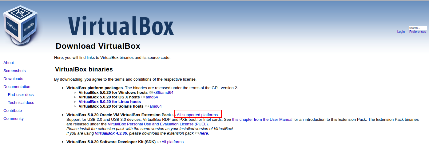 $ wget http://download.virtualbox.org/virtualbox/5.0.20/Oracle_VM_VirtualBox_Extension_Pack-5.0.20-106931.vbox-extpack
