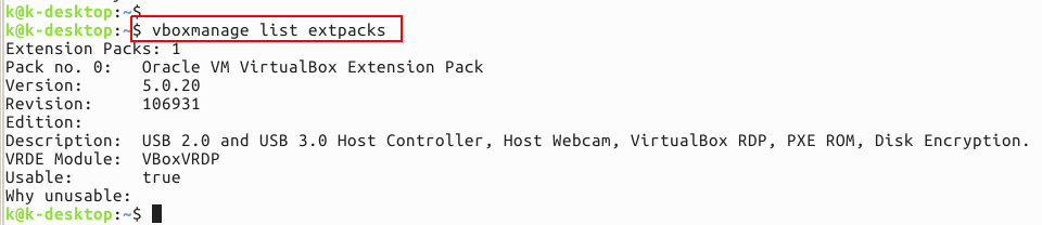$ VBoxManage list extpacks