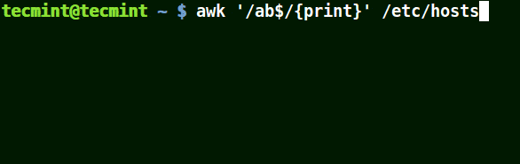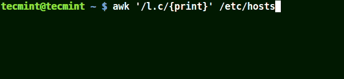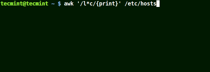 在下面的示例中,指定了模式 localhost,因此 awk 将匹配文件 /etc/hosts 中有 localhost 的那些行。