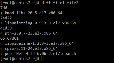 输入diff 命令它将告诉我们 file1 和file2 有什么不同: