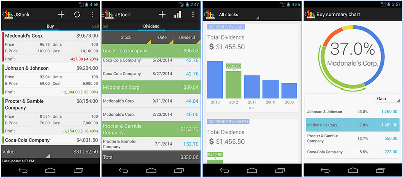 “开源”就意味着免费或标准低下的时代已经过去了。鉴于 JStock 只是一个个人完成的产物,作为一个投资组合管理软件它最令人印象深刻的是包含了非常多实用的功能,以上所有的荣誉属于它的作者 Yan Cheng Cheok!例如,JStock 支持通过监视列表去监控价格,多种投资组合,自选/内置的股票指标与相关监测,支持27个不同的股票市场和跨平台的云端备份/还原。JStock 支持多平台部署(Linux, OS X, Android 和 Windows),你可以通过云端保存你的 JStock 投资组合,并通过云平台无缝的备份/还原到其他的不同平台上面。