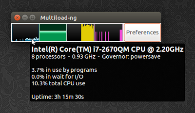 Multiload-ng 可在 WebUpd8 的主 PPA (针对 Ubuntu 14.04 - 16.04 / Linux Mint 17.x 和 18)中获取到。可以使用下面的命令来添加 PPA 并更新软件源: