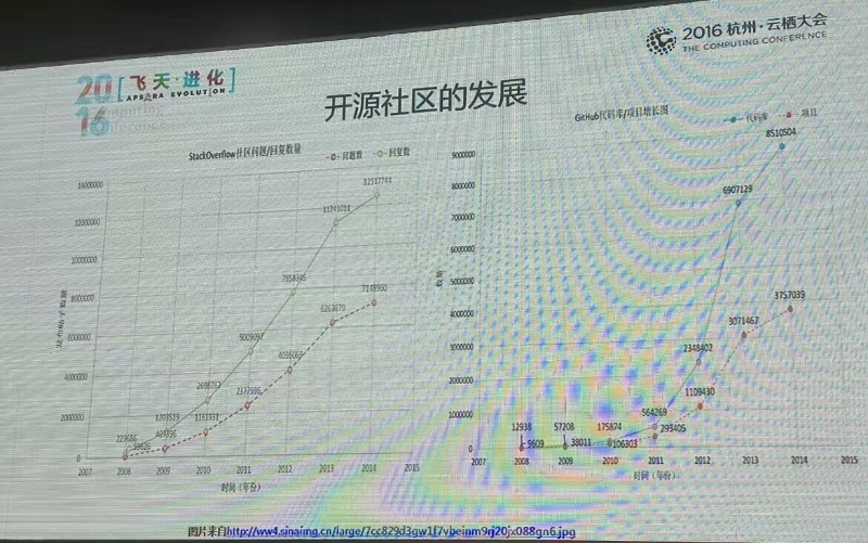 开源专场是由阿里云技术专家唐容主持的,并做了开篇演讲《阿里开源发展与生态》,算是比较系统的讲了阿里开源的发展和理念吧。