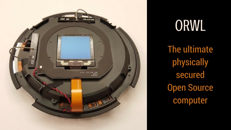 ORWL 宣称是社区里“造得最安全的家用电脑”。 它是一台小型的飞碟形计算机,在设计上全面考虑了物理安全性。物理安全很重要,因为一旦有人获得了从物理上访问你的计算机的途径,那么就 Game Over 了,这是信息安全专业人员中的一个老生常谈。