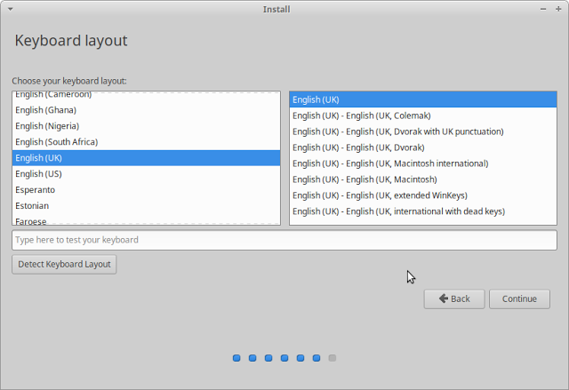 接下来两步是选择语言和键盘设置,以确定键盘模式。