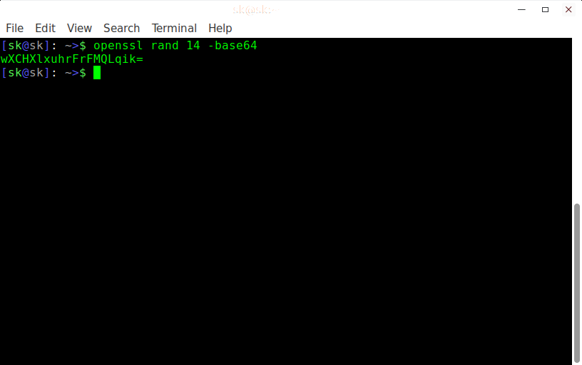 上面的命令将生成一个安全、随机、高强度且基于 base64 编码的密码。