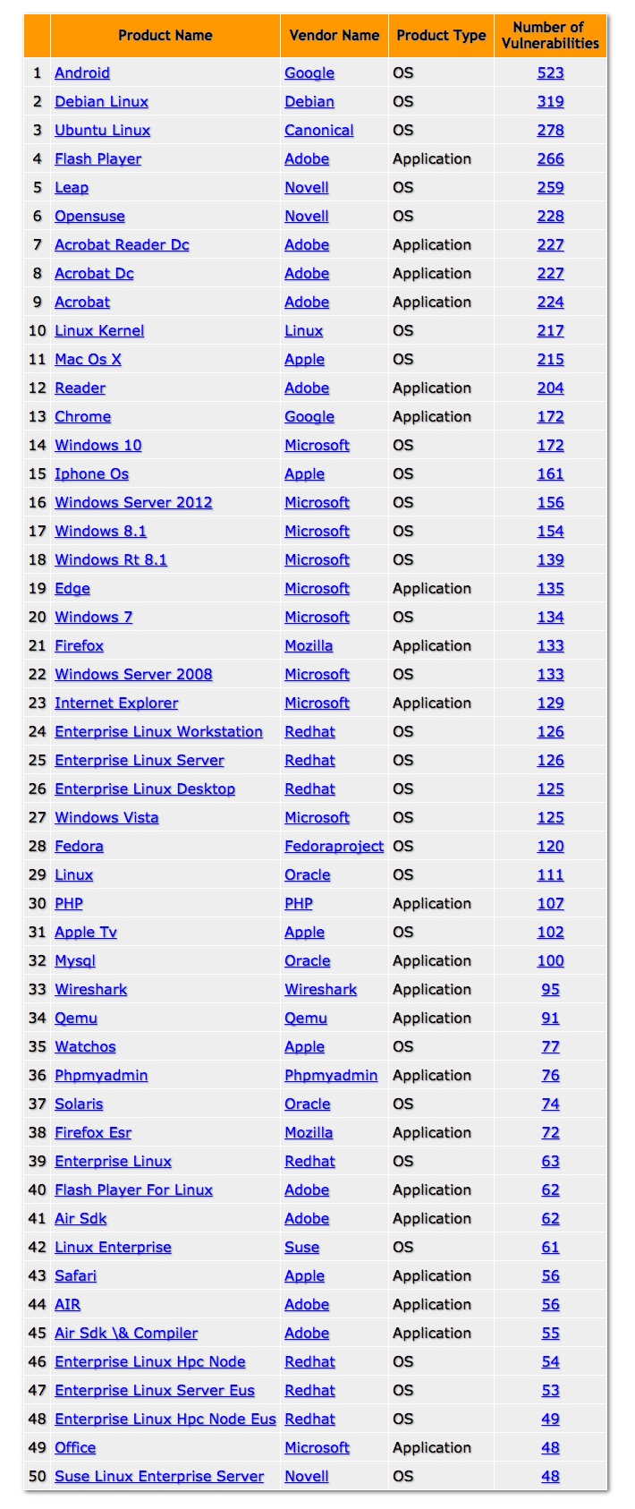 Android、Debian 和 Ubuntu “荣膺”2016 安全缺陷最多的产品前三名