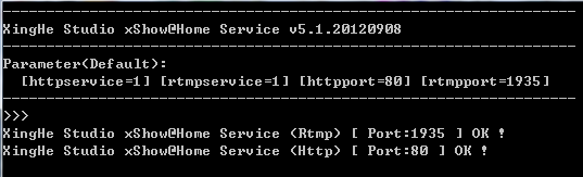 1.执行xShow@Home.exe后启动服务(Http和Rtmp)