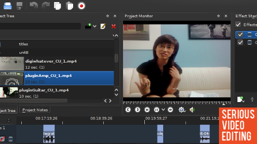 Kdenlive,最初于 2002 年发布,是一款强大的非线性视频编辑器,有 Linux 和 OS X 版本(但是 OS X 版本已经过时了)。Kdenlive 有用户友好的、基于拖拽的用户界面,适合初学者,又有专业人员需要的深层次功能。
