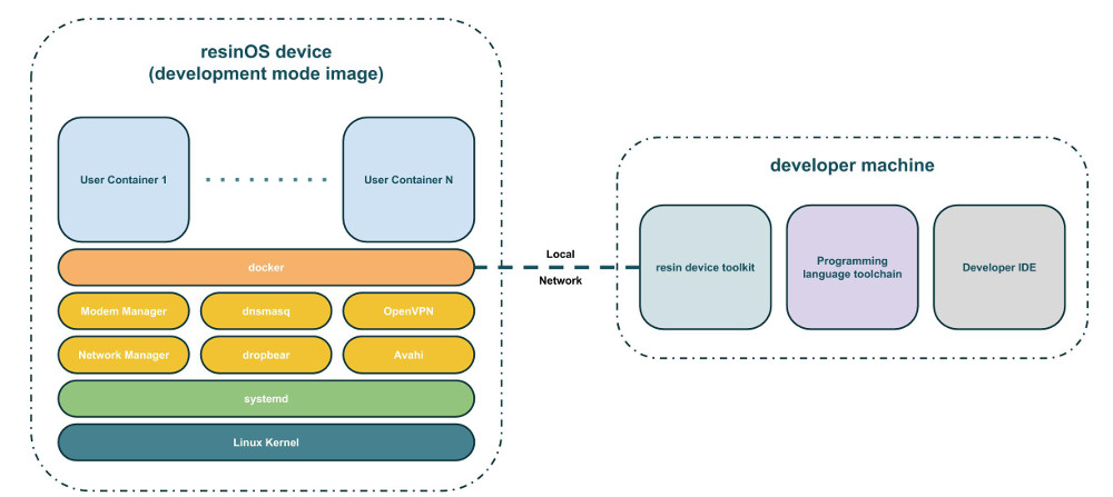 与基于 Linux 的 CoreOS 一样,ResinOS 集成了 systemd 控制服务和网络协议栈,可通过异构网络安全地部署更新的应用程序。 但是,它是为在资源受限的设备(如 ARM 黑客板)上运行而设计的,与之相反,CoreOS 和其他基于 Docker 的操作系统(例如基于 Red Hat 的 Project Atomic)目前仅能运行在 x86 上,并且更喜欢资源丰富的服务器平台。 ResinOS 可以在 20 中 Linux 设备上运行,并不断增长,包括 Raspberry Pi,BeagleBone 和Odroid-C1 等。