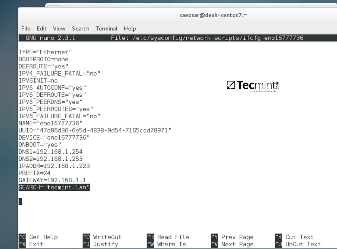 $ sudo vi /etc/sysconfig/network-scripts/ifcfg-eno16777736