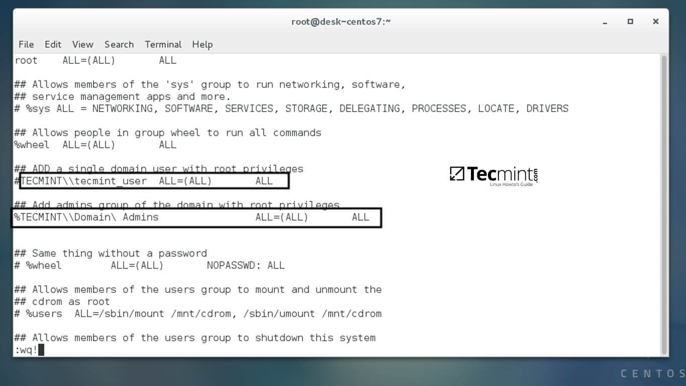 YOUR_DOMAIN\\domain_username ALL=(ALL:ALL) ALL #For domain users