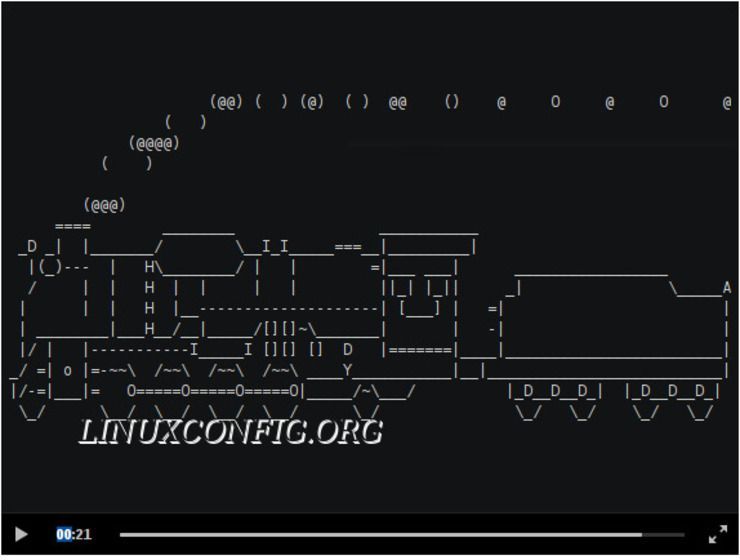 <asciinema-player src="./steam_locomotive.json" cols="80" rows="24"></asciinema-player>