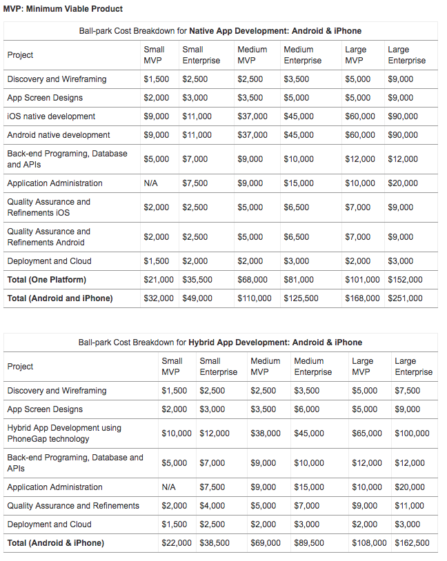 2015 年初,原生方式和混合方式开发 MVP 设计架构的费用对比