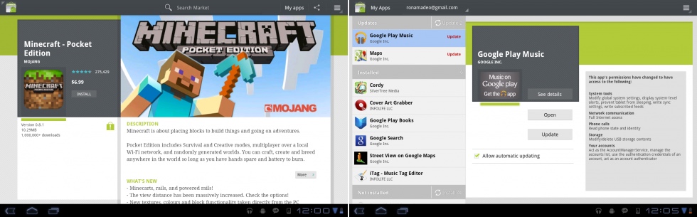安卓 3.2 的兼容性缩放和一个安卓平板上典型的展开视图应用。 [Ron Amadeo 供图]