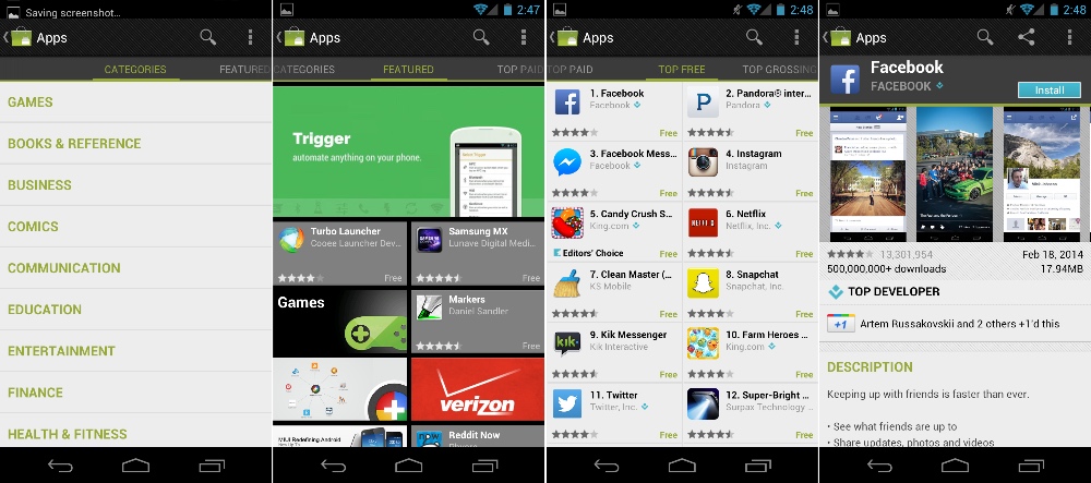 和之前完全不同的市场设计。以上是分类,特色,热门应用以及应用详情页面。 [Ron Amadeo 供图]