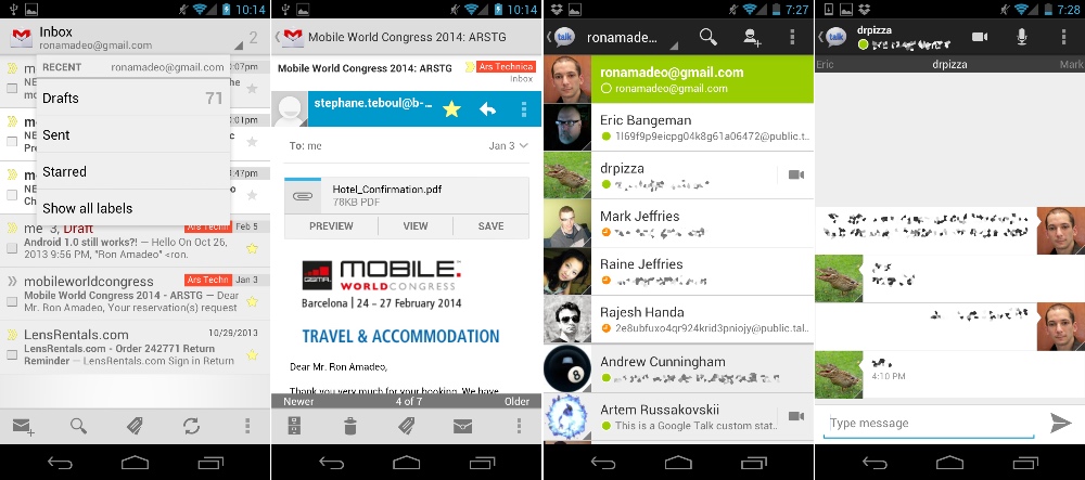 Gmail 和 Google Talk —— 它们和蜂巢中的相似,但是更小! [Ron Amadeo 供图]