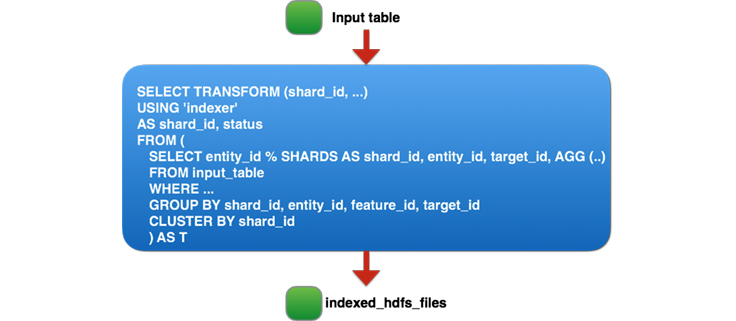 基于 Hive 的流水线建立该索引大概要三天完成。它也难于管理,因为该流水线包含上百个分片的作业,使监控也变得困难。同时也没有好的方法来估算流水线进度或计算剩余时间。考虑到 Hive 流水线的上述限制,我们决定建立一个更快、更易于管理的 Spark 流水线。