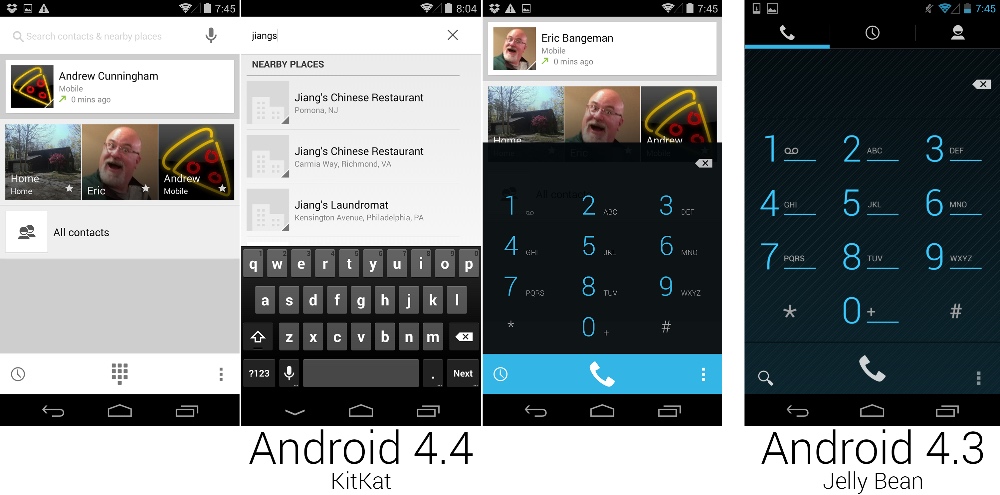 谷歌完全重制了奇巧中的拨号,创造了一个疯狂的设计,改变了用户对手机的思考方式。实际上新版拨号中的数字都被尽可能地隐藏了——在首屏上甚至没有拨号盘。打电话的主要界面现在是个搜索栏!如果你想给你的联系人打电话,只要在搜索栏输入他的名字;如果你想给一个公司打电话,只要输入公司的名字,拨号会通过谷歌地图庞大的数据库找到号码。它工作得令人难以置信的好,这是只有谷歌才能完成的事情。