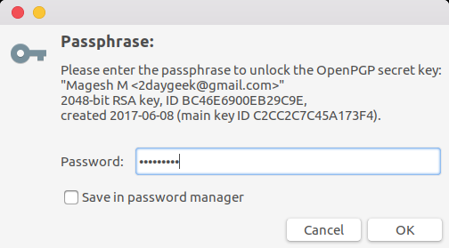 An entry already exists for eMail/2daygeek@gmail.com. Overwrite it? [y/N] y