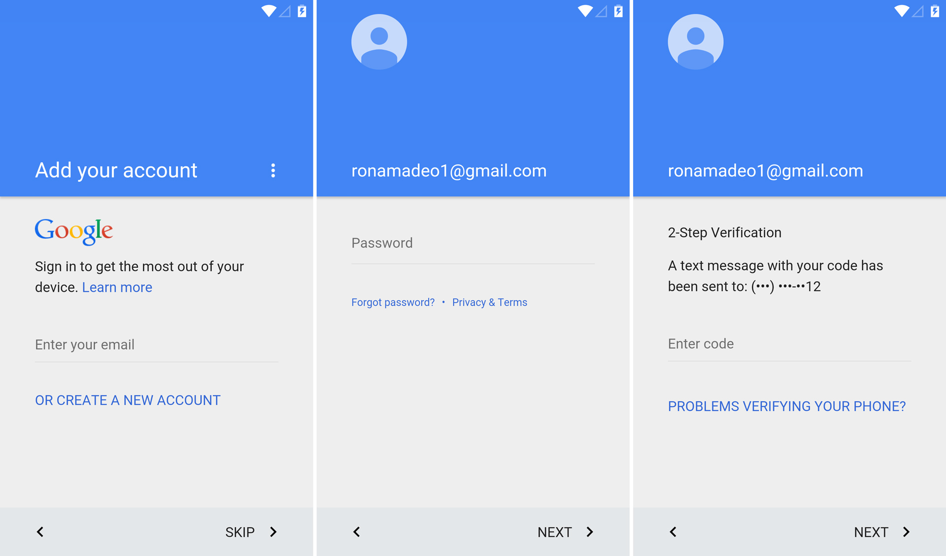 开机设置经过了大翻新,它不止是为了跟上 Material Design 指南,还是“面向未来”的,这样不管未来谷歌采用什么新的登录和验证方案,它都能够适应。记住,写“安卓编年史”的部分原因就是一些旧版安卓已经不再能工作了。这些年来,谷歌已经为用户升级了更佳加密的验证方案以及二次验证,但添加这些新的登录要求破坏了旧客户端的兼容性。很多安卓特性要求访问谷歌云设施,所以你没法登录的话,像安卓 1.0 的 Gmail 这样的就没法工作了。