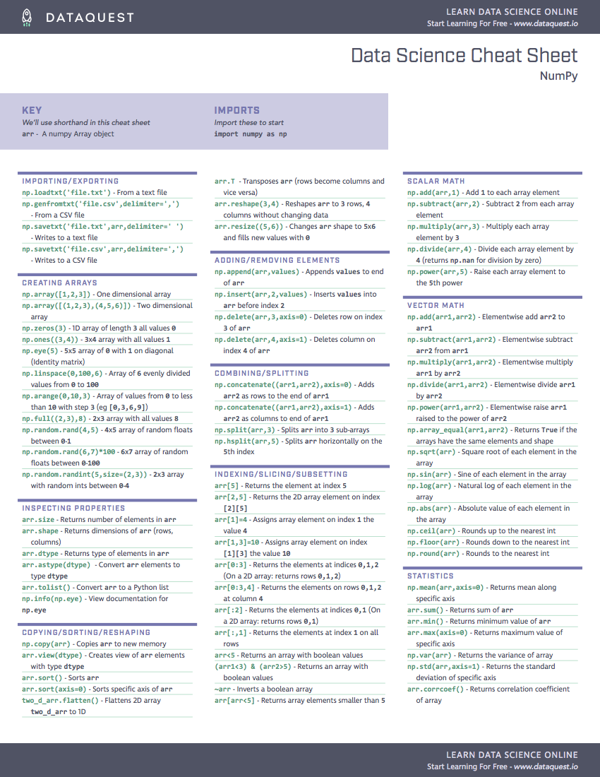 来源: https://www.dataquest.io/blog/numpy-cheat-sheet/