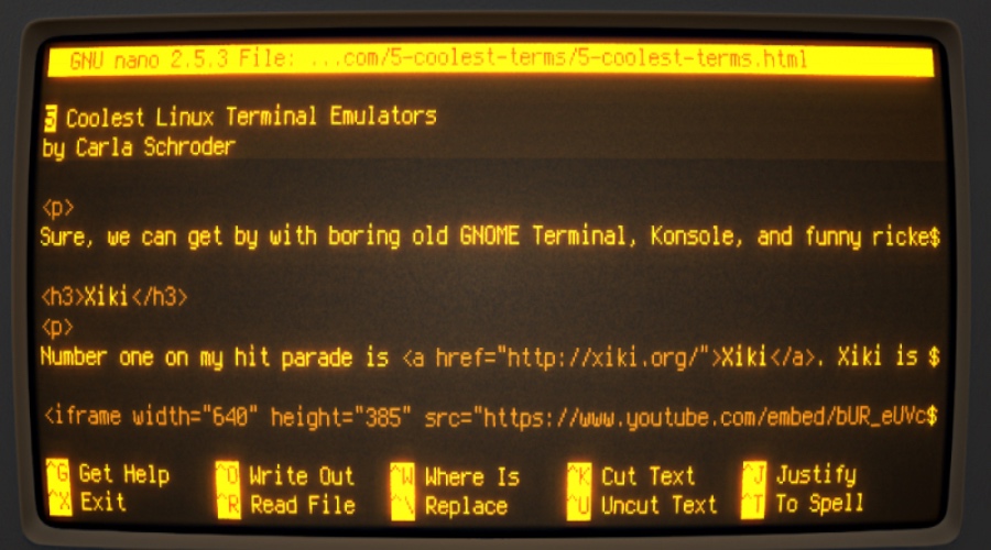 Carla Schroder 正在看着那些她喜欢的终端模拟器, 包括展示在这儿的 Cool Retro Term。