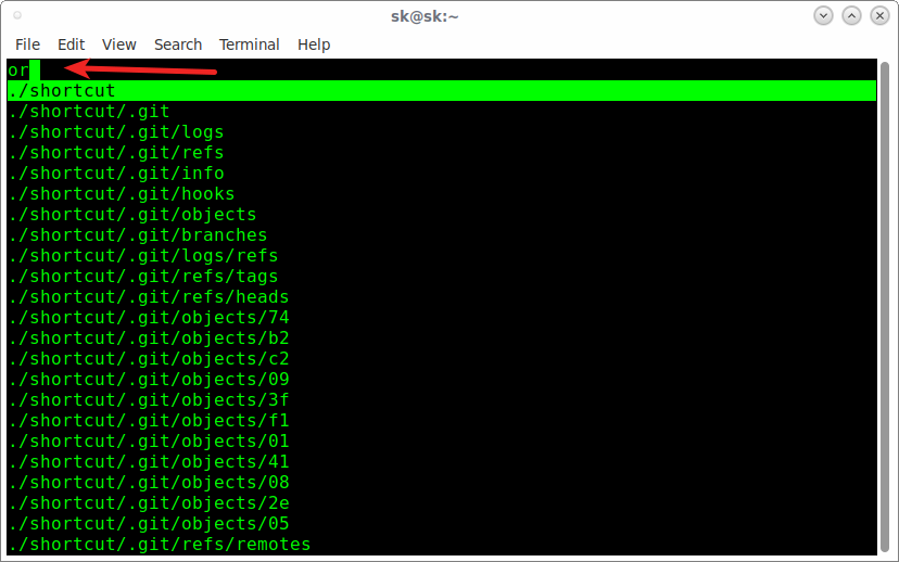 而且,它还会根据你输入的内容过滤目录和文件。比如,当我输入 “or” 时会显示如下结果。