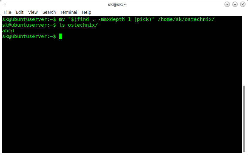 mv "$(find . -maxdepth 1 |pick)" /home/sk/ostechnix/