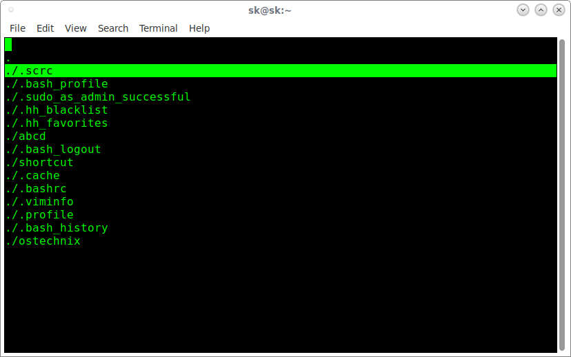 通过上下按钮选择要迁移的文件,然后按下回车就会把它迁移到 /home/sk/ostechnix/ 目录中的。