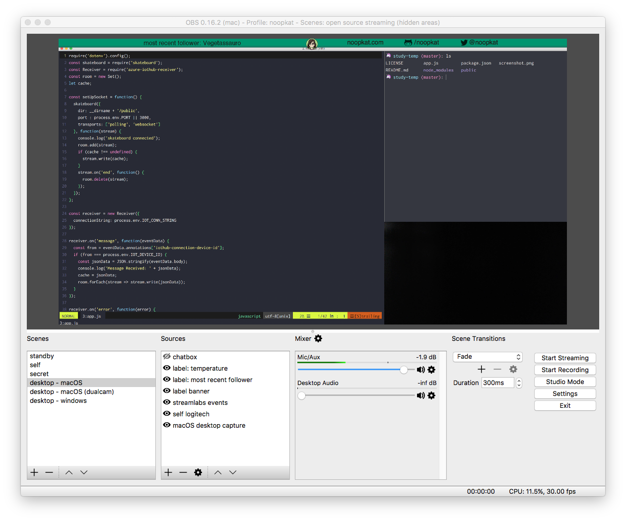 我几个月前开始做这个,还没有回顾过。我甚至不确定我的观众们有没有意识到我进行的这些精心的设置。我想他们可能会把“我可以看到每个东西”视作理所应当,而事实上我常常忙于敲代码,而看不到正在直播的东西!