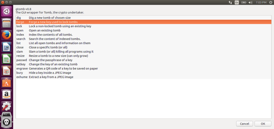 Tomb 主要是一个命令行工具,所以我将首先介绍这个用法。 如果你不喜欢使用终端,你可以跳过这节并查看下一部分。
