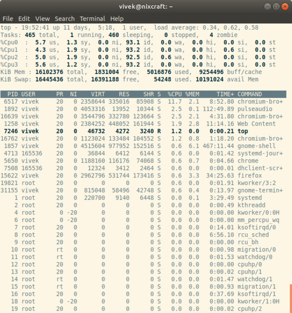 相关链接:CentOS / RHEL:安装 htop——交互式文本模式进程查看器