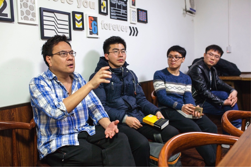 从左往右,依次是北京站召集人宋贺、鬼谷子、Martin、成大炫