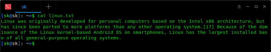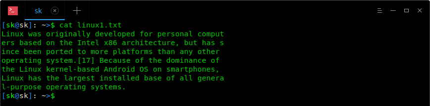请允许我向您展示一些示例,以便您更好地了解 fold 命令。 我有一个名为 linux.txt 文件,内容是随机的。