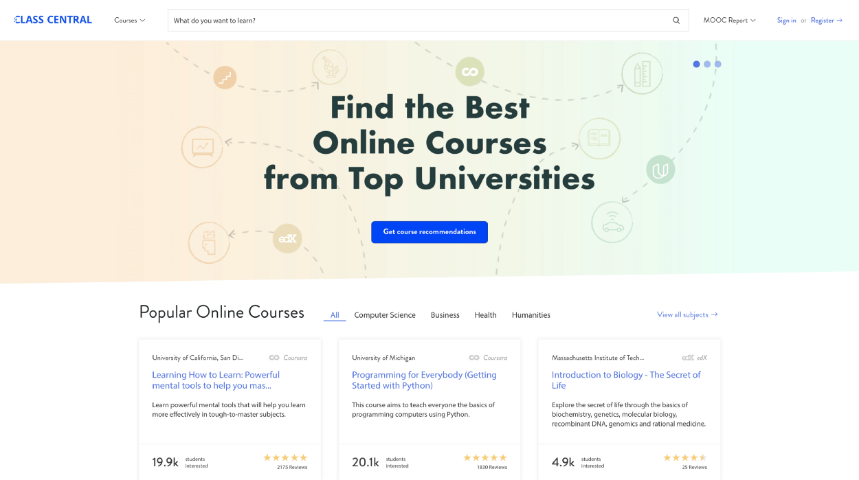 www.class-central.com — 最流行的在线课程搜索引擎的创始人