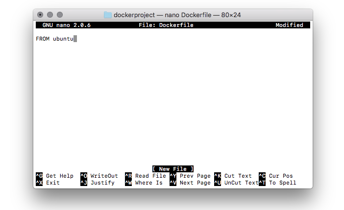 现在,在 dockerprojects 目录中,你可以使用自己喜欢的文本编辑器去创建一个 Dockerfile 文件;我喜欢使用 nano,它对新手来说很容易上手。