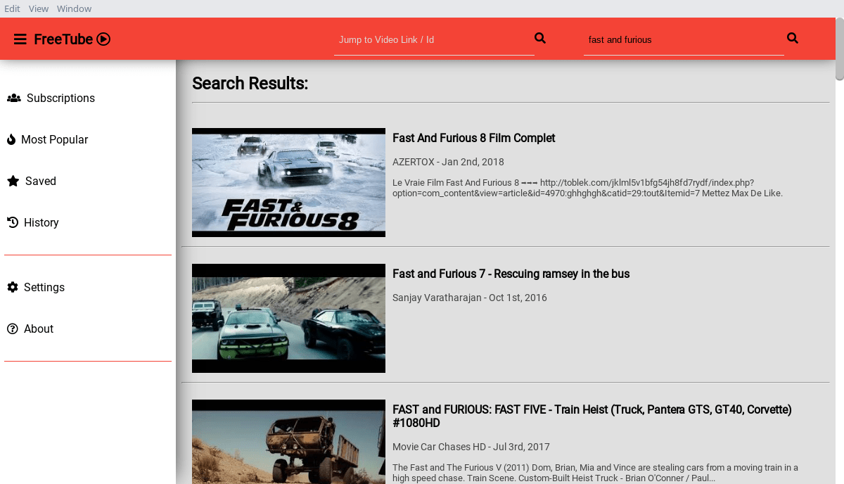 在搜索框中输入视频名称,然后按下回车键。FreeTube 会根据你的搜索查询列出结果。