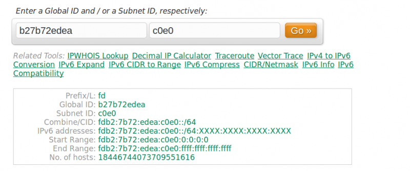 在线地址生成器的一个示例是 本地 IPv6 地址生成器。你可以在线找到许多这样很酷的工具。你可以使用它来为你创建一个新地址,或者使用它在你的现有全局 ID 下为你创建子网。
