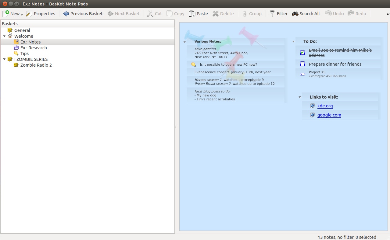 Linux 拥有你需要的所有东西比如记录一个主题,撰写那些学期论文。让我们从记笔记开始。如果你熟悉 Microsoft OneNote,你一定会喜欢 BasKet Note Pads。有了这个应用程序,你可以为主题创建 笔记本 basket ,并添加任何东西——注释、链接、图像、交叉引用(到其他笔记本─图 3)、应用程序启动器、从文件加载等等。