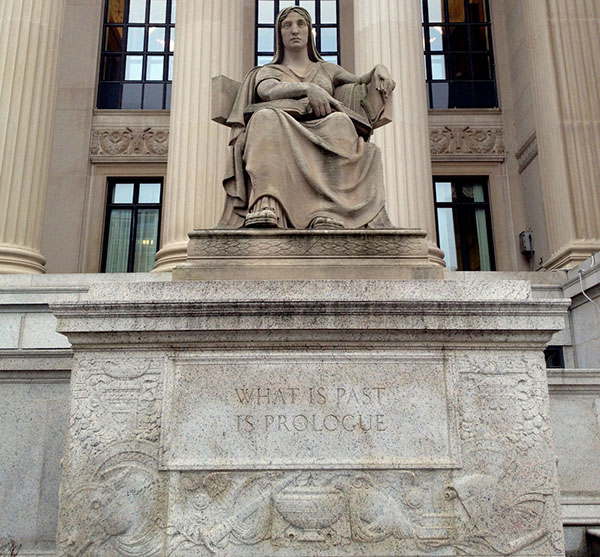 深入栈的探秘之旅结束了。我并不想过于深入。下一周我将深入递归、尾调用以及其它相关内容。或许要用到谷歌的 V8 引擎。作为函数的序言和结语的讨论的结束,我引述了美国国家档案馆纪念雕像上的一句名言:( 凡是过去 皆为序章 what is past is prologue )。