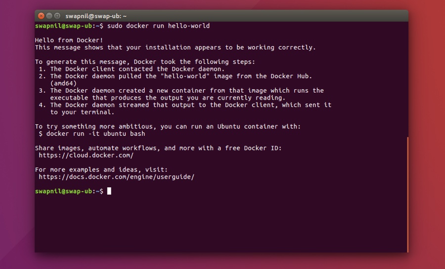 恭喜!在你的 Ubuntu 系统上正在运行着 Docker。