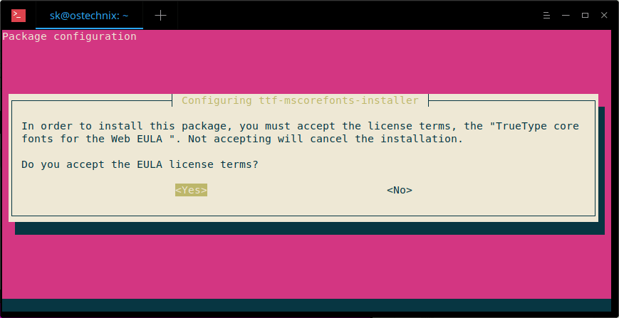 $ sudo apt install ttf-mscorefonts-installer
