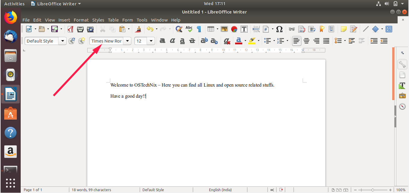 大多数教育机构仍在使用 Microsoft 字体, 我不清楚其他国家是什么情况。但在泰米尔纳德邦(印度的一个州), Times New Roman 和 Arial 字体主要被用于大学和学校的几乎所有文档工作、项目和作业。不仅是教育机构,而且一些小型组织、办公室和商店仍在使用 MS Windows 字体。以防万一,如果你需要在 Ubuntu 桌面版上使用 Microsoft 字体,请按照以下步骤安装。